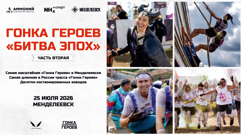 Всероссийский забег с препятствиями «Гонка Героев» состоится в «городе химиков» 25 июля. Напомним, это самый длинный — 12 километров — и единственный забег в нашей стране, который каждый год проходит в театрализованном формате, с декорациями препятствий и костюмированными командами.