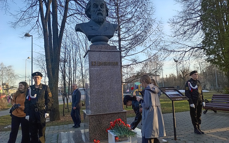 Побывали космические гости и в парке «Крылья Советов» в Авиастроительном районе Казани. Здесь они вместе с казанскими школьниками — участниками «Движения Первых» — возложили цветы к памятнику основоположнику теоретической космонавтики и ракетостроения Константину Эдуардовичу Циолковскому.