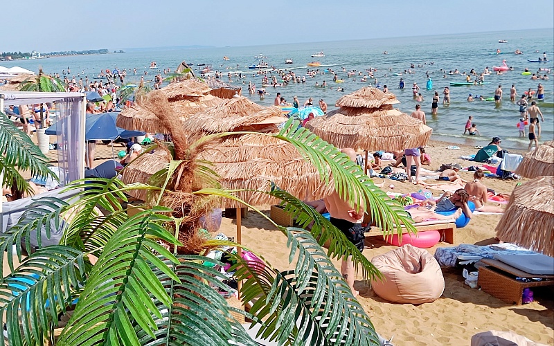 Пляж «Камское море» в Лаишево. Пляж со светлым и мягким песком протянулся почти на километр. Тут царит самая настоящая курортная атмосфера: обустроены площадки для игры в волейбол, можно покататься на сапах или катамаранах, а также посмотреть на окрестности со смотровой вышки. Фото: Дмитрий Сивков