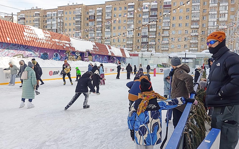 На катке в выходные дни довольно людно. Фото: Дмитрий Сивков