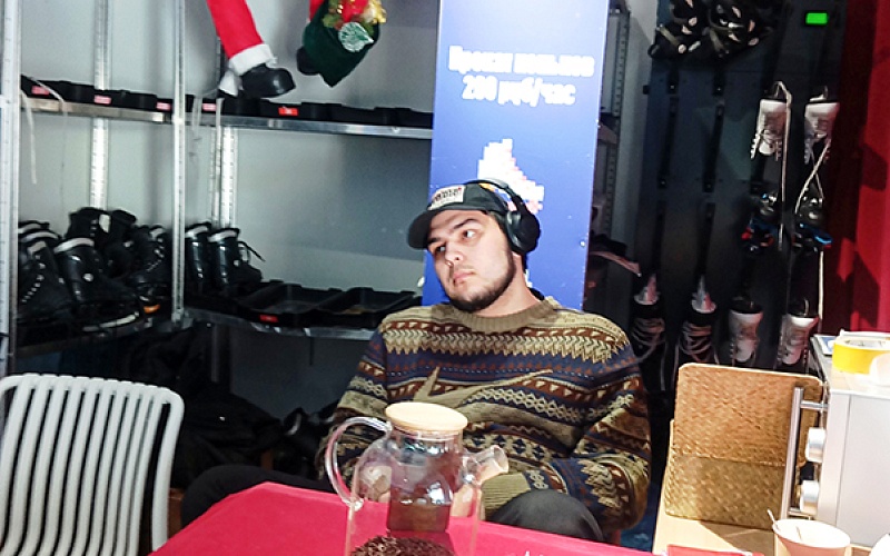 Редкие минуты отдыха у работника пункта проката коньков. Фото: Дмитрий Сивков