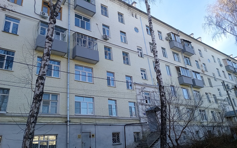 Сталинская пятиэтажка, семь подъездов. Здесь в последнем подъезде, на пятом этаже, в квартире №100, жил Сергей Королев. В соседней квартире, №101, поселился его коллега Валентин Глушко. По словам жильцов дома, в квартире №100 давно уже никто не живет.