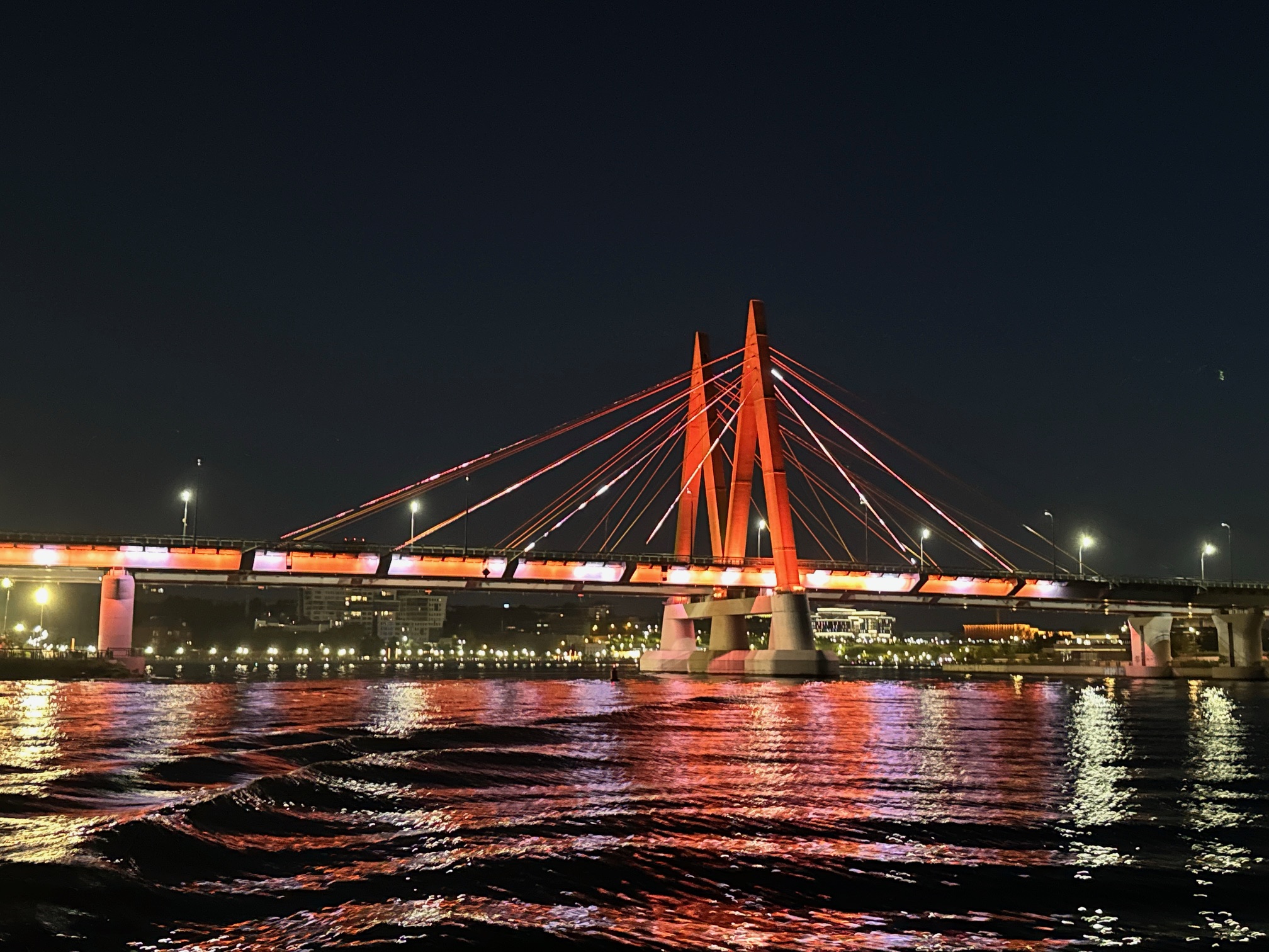 – Светодиодная подсветка моста управляется компьютером и может менять цвета в зависимости от праздников или событий, например, становясь зеленой в дни мусульманских праздников или красно-белой в честь спортивных мероприятий.