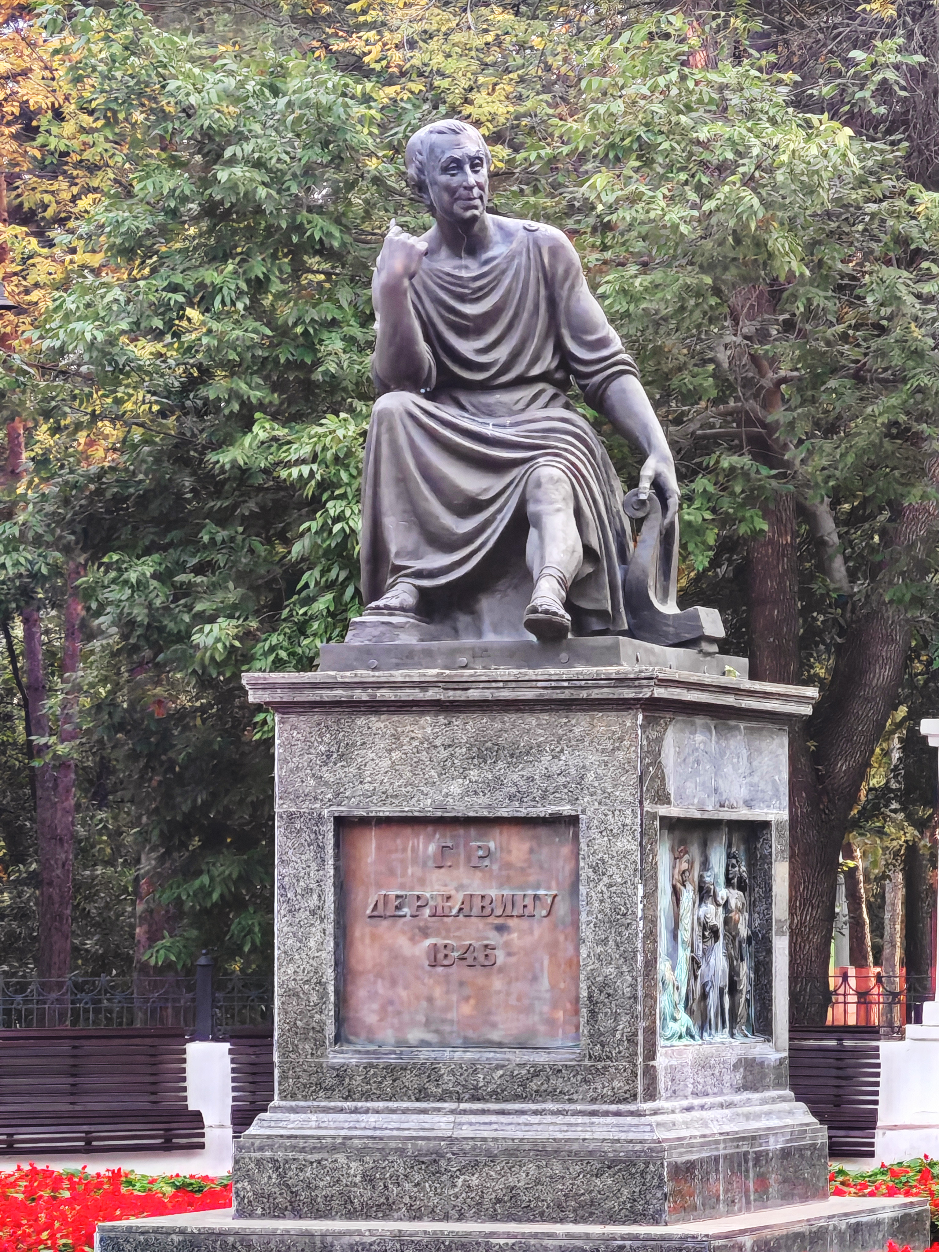 На лицевой стороне пьедестала находится надпись: «Г. Р. Державину. 1846».