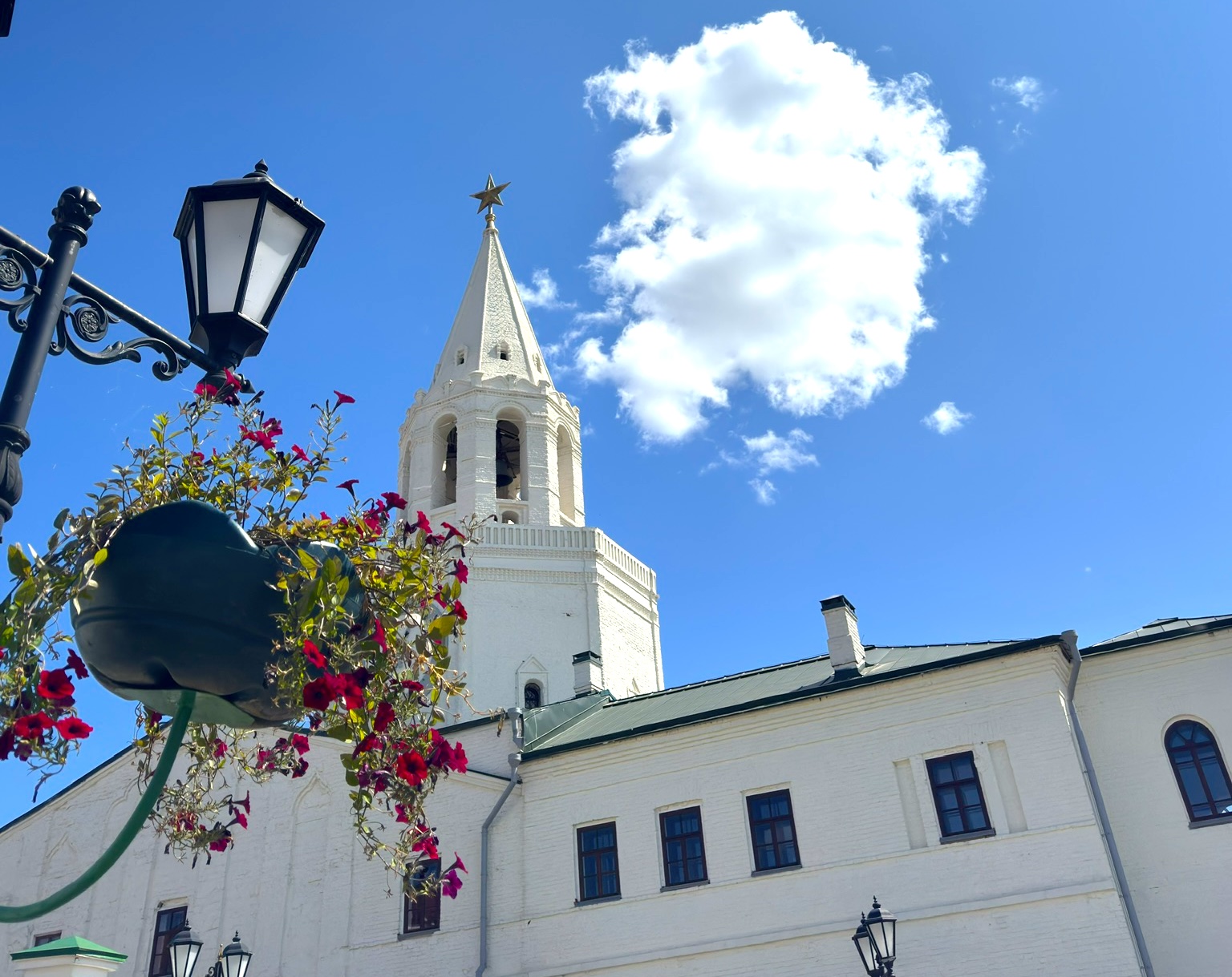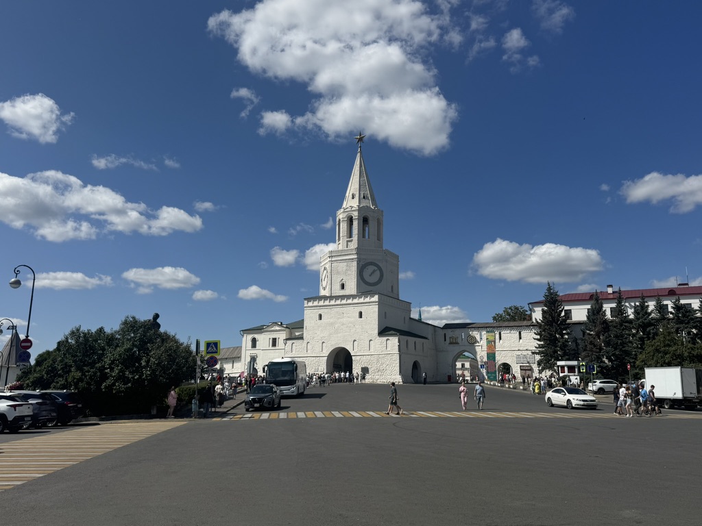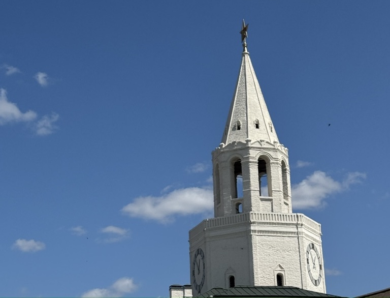 Спасская башня — главный вход в Казанский Кремль и одна из его самых узнаваемых достопримечательностей. Построенная в XVI веке псковскими зодчими, она изначально служила оборонительным сооружением, но позже приобрела парадный вид. Башня названа в честь иконы Спаса Нерукотворного, которая раньше находилась над её воротами. Её белокаменные стены украшены резными элементами, а венчает башню зелёный шатёр с золотым шпилем и вращающейся фигурой дракона Зиланта — символа Казани.