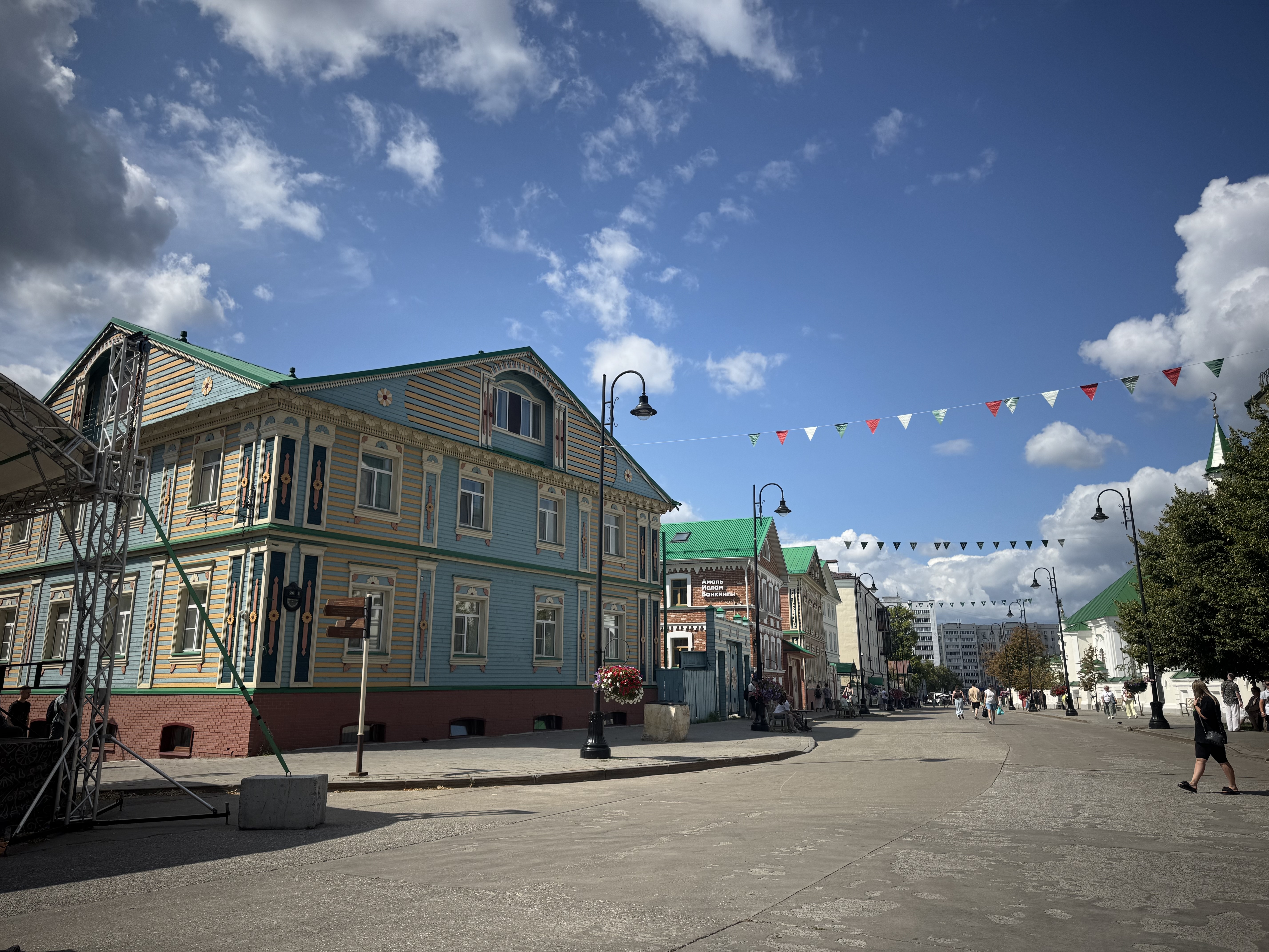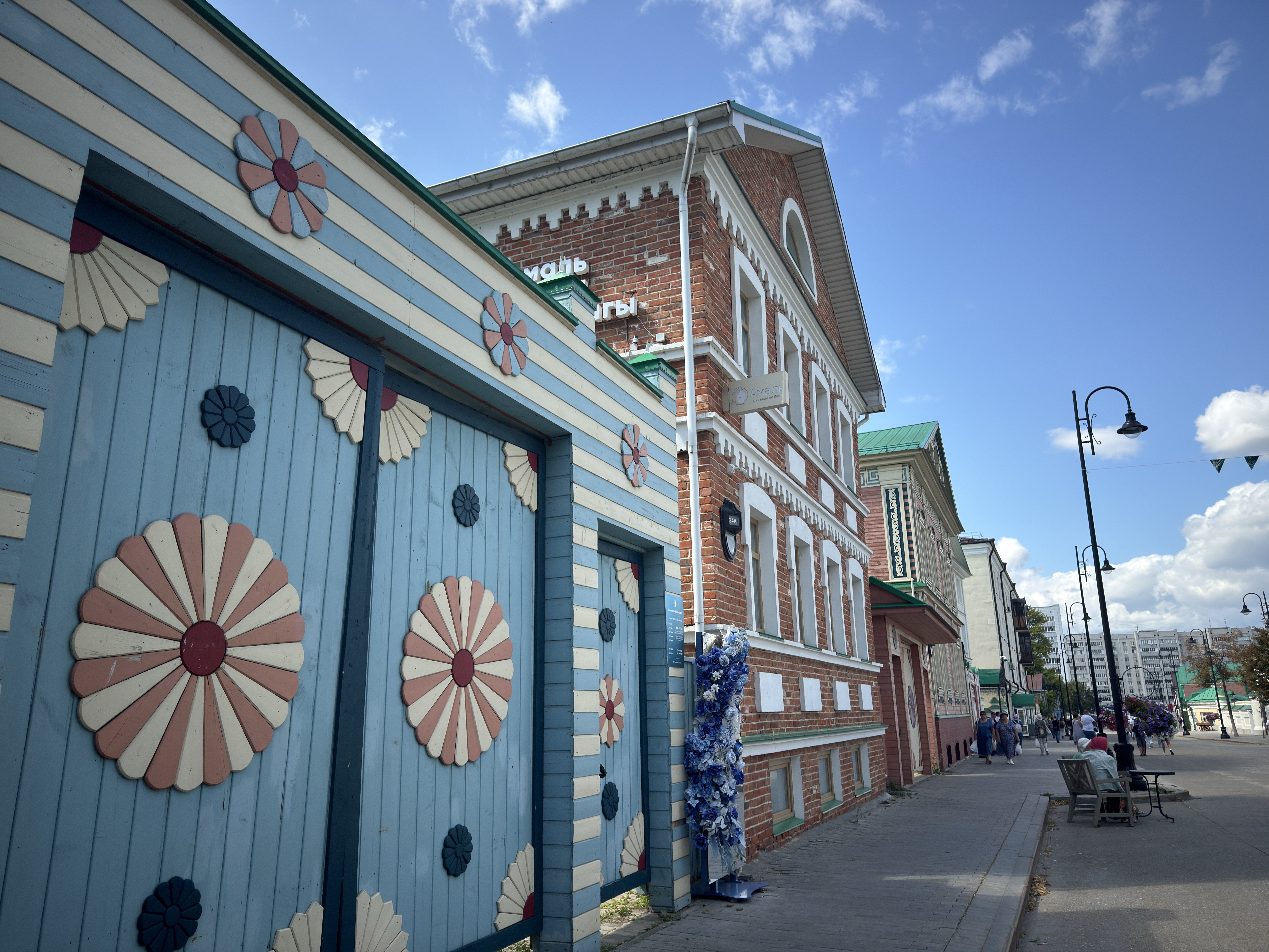 – Деревянные дома: традиционные татарские дома с цветными ставнями и резьбой, создающие уютную атмосферу старого города.