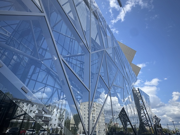 Футуристический облик театра скрывает глубокую связь с татарскими традициями — волнистые линии фасада напоминают национальные орнаменты, а пространственная структура здания переосмысляет элементы традиционного татарского зодчества через призму современной архитектуры. Особое внимание привлекает игра света и тени на перфорированных поверхностях, создающая эффект динамичного движения даже в статичном сооружении.