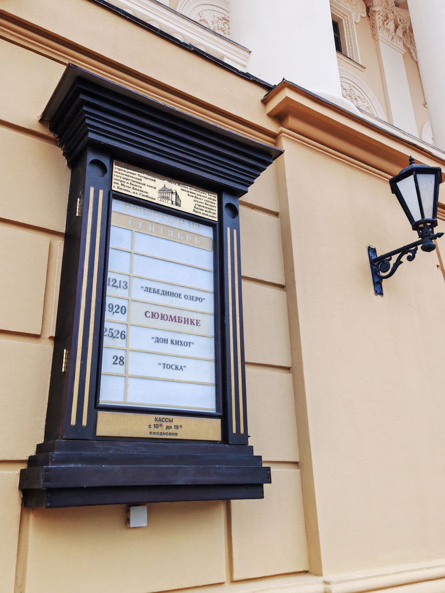 – Репертуар: от «Лебединого озера» до современных татарских постановок.
