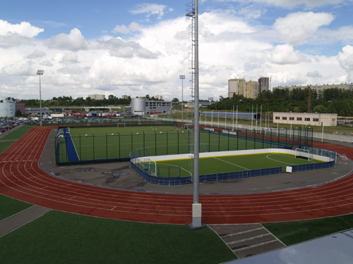 Центр хоккея на траве" занимает территорию в 6,5 га. Включает в себя два сертифицированных FIH хоккейных поля 63 х 101,4 метра каждое с системой полива и покрытием из искусственной травы (DOMOLYMPICS), шесть беговых дорожек по 400 м с покрытием из полиуретана, площадку для хоккея с шайбой(800 кв.м) с покрытием из искусственной травы (HOCKEY XTREME), открытую баскетбольно-волейбольную площадку(450 кв.м) с полиуретановым покрытием, трибуны на 2300 мест с подтрибунными помещениями, общей площадью 4055 кв.м., в которых находятся 8 раздевалок,тренажерный зал, медицинские и массажные комнаты, кабинеты, спорткладовые, VIP трибуны на 40 мест.