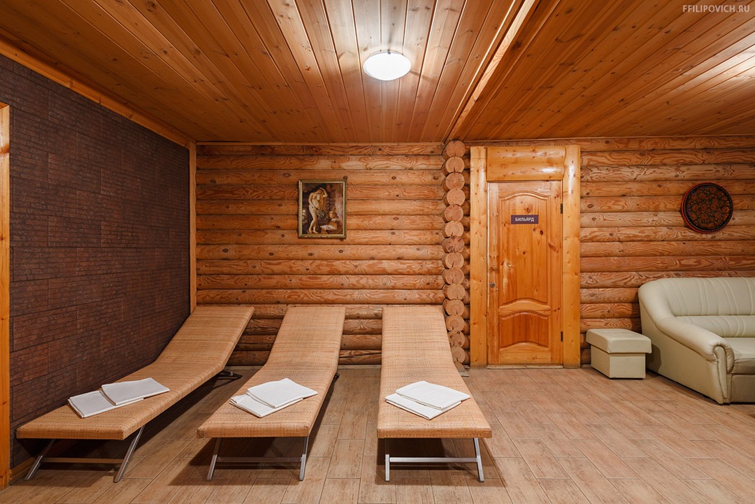 Гостям предлагается проживание в главном корпусе или в отдельных деревянных домиках, есть банный комплекс с тремя финскими саунами, ресторан на берегу р.Свияга с Немецкой, Русской и Европейской кухней.