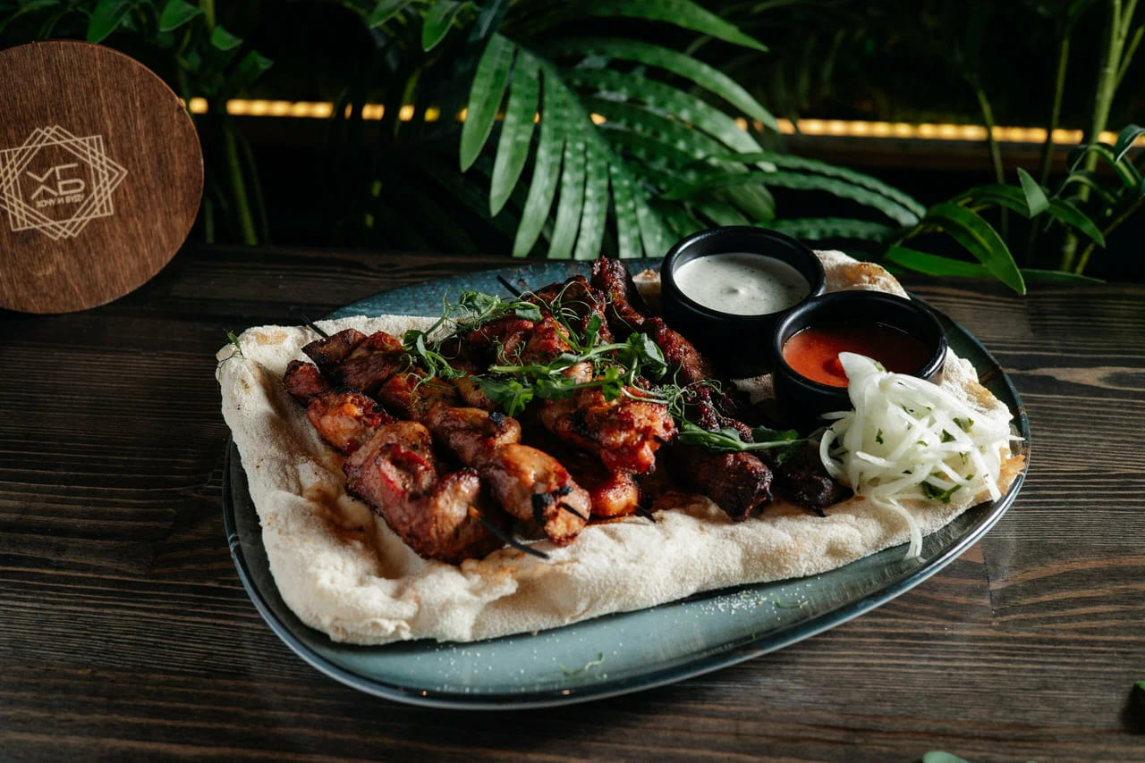 Здесь вы найдете разнообразное меню, включающее в себя блюда из мяса, рыбы и морепродуктов, а также салаты, супы и десерты.