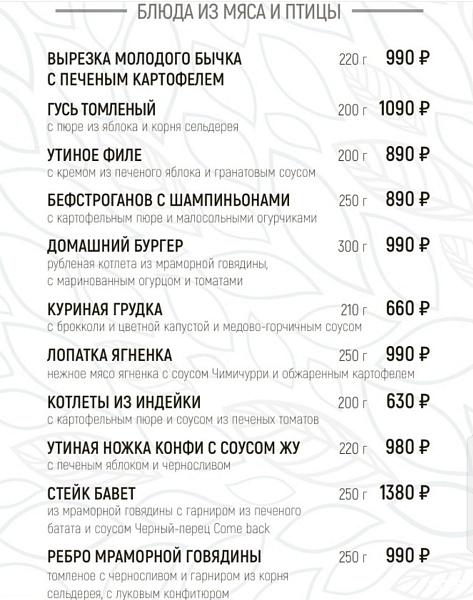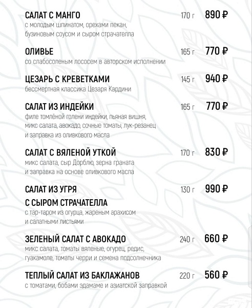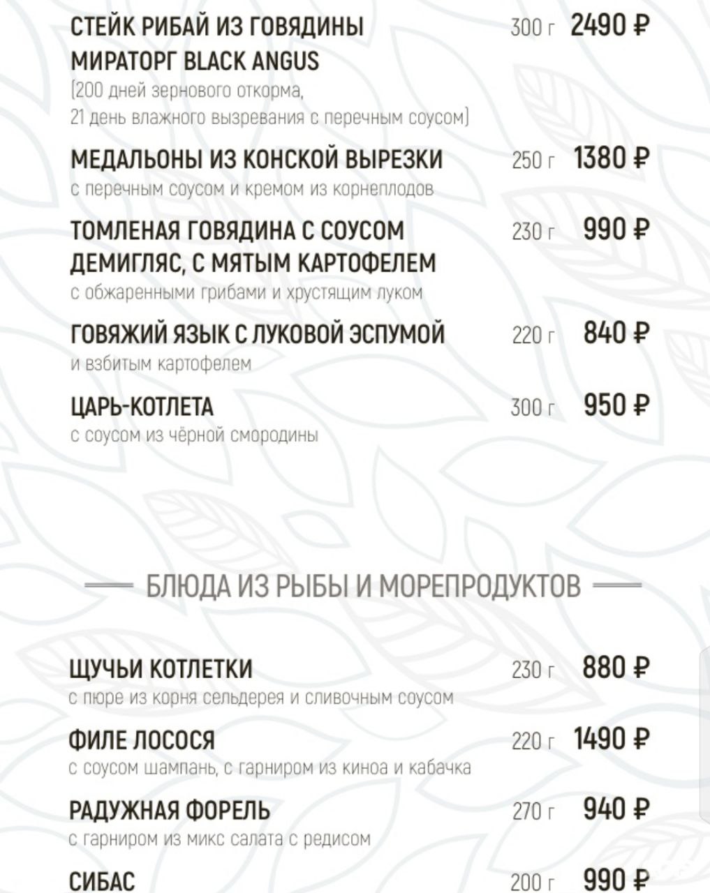 Авторское меню от бренд-шефа Игоря Казакова – это виртуозное сочетание традиций и новаторства. Вдохновляясь русскими корнями и современными трендами, Игорь создает блюда с яркой подачей и неожиданными вкусовыми акцентами.Так же как кухня, винная и коктейльная карта ресторана не остается в стороне. В винном мастерстве гостям помогает разобраться профессиональный сомелье. Умение пробовать столь особый напиток зачастую по-новому раскрывает его купаж. А подчеркнуть вкус вина помогут легкие закуски.