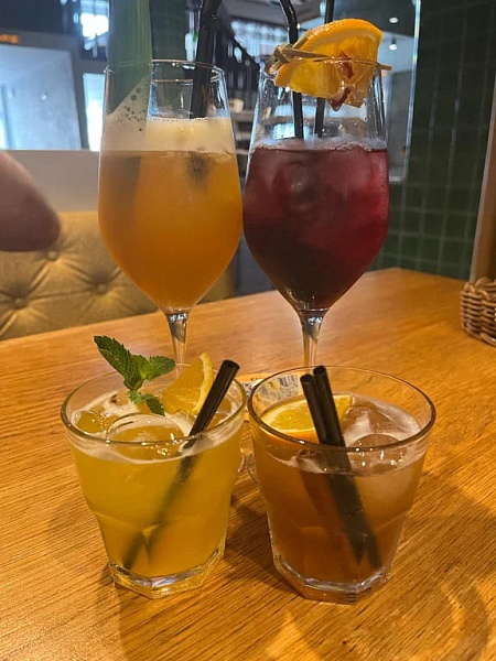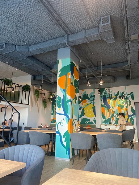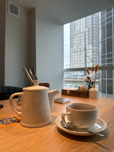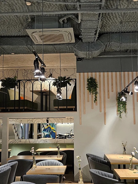 Интерьер заведения — это настоящий шедевр: стильные деревянные детали, мягкое освещение и живые растения создают гармоничное пространство, где хочется задержаться подольше.