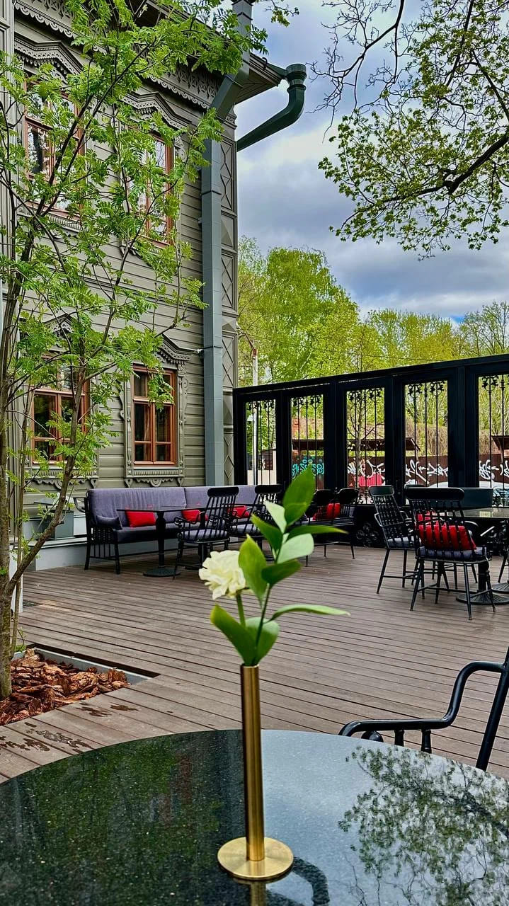 Ресторан «Вишня Золотая» расположен в отреставрированном доходном доме Терпигоревых, построенном в 1905 году. Интерьер выполнен в стиле ар-деко с дизайнерским светом, камином в изразцах и чугунной лестницей Каслинского завода.