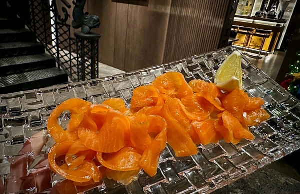 В меню представлены блюда татарской и средиземноморской кухни, такие как пицца, треугольники, болоньезе, конина в кувшине, а также завтраки с кашей из печи и омлетом с трюфелями. В барной карте представлены три десятка марок виски, а в винной — бутылки с оценками мировых рейтингов.